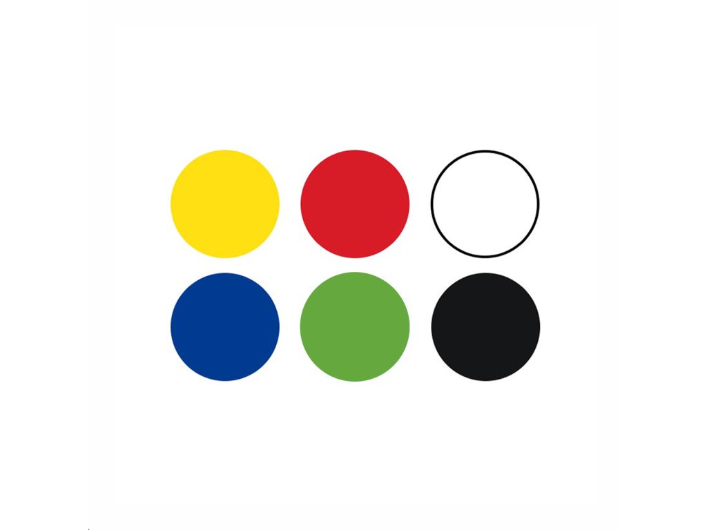 - mix barev: zelená, černá, bílá, základní žlutá, červená, modrá