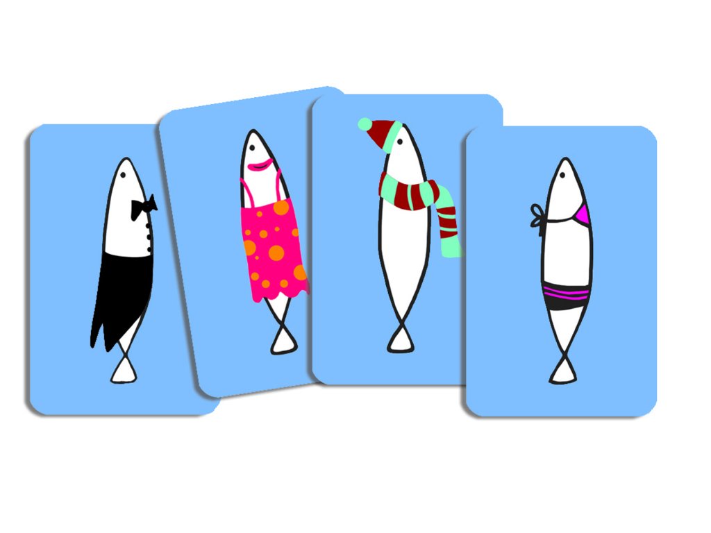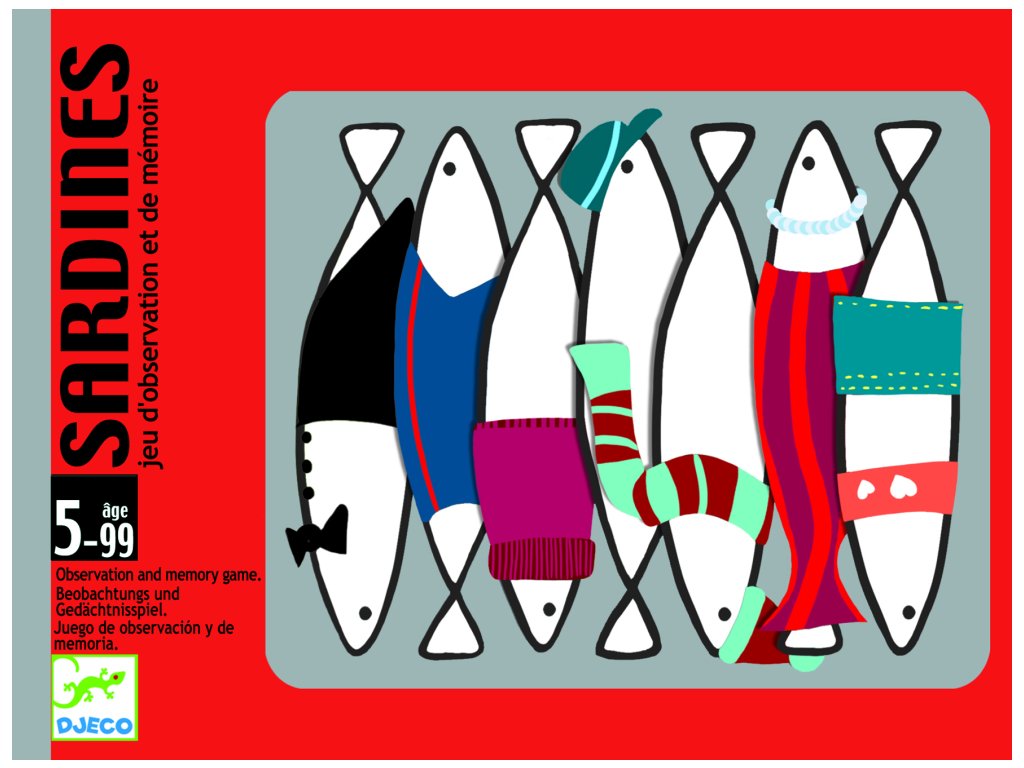 Hra Sardinky je zábavná karetní hra založená na dobré paměti a pozorovacích schopnostech. Hráči mají pár sekund na to, aby se podívali na malé sardinky, zapamatovali si je a znovu je našli v krabici. Skvělá hra pro celou rodinu.