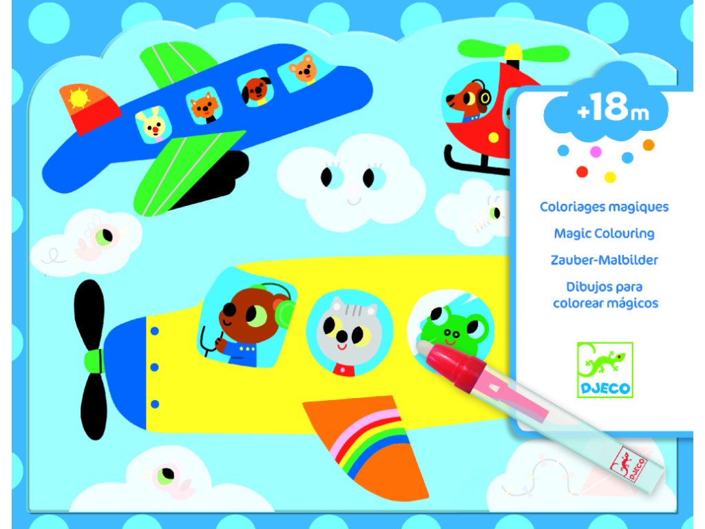 Vzhůru nahoru, nad střechy, stromy, mraky až do vesmíru! Opakovaně použitelná malá kreativní sada 4 obrázků na magické vybarvování vodou je ideální k vzbuzení zájmu batolat o malování a pro rozvoj jemné motoriky. Atraktivně ilustrované obrázky z ohebného plastu mají speciální bílé plošky. Po přetření plošek vodou se ukáží barevné ilustrace pod nimi. Po uschnutí opět zbělají a magické objevování se štětcem v ruce může začít nanovo. Štětec má široký a pevný plstěný hrot a nádržku na vodu. Baleno v praktické průhledné fóliové obálce.