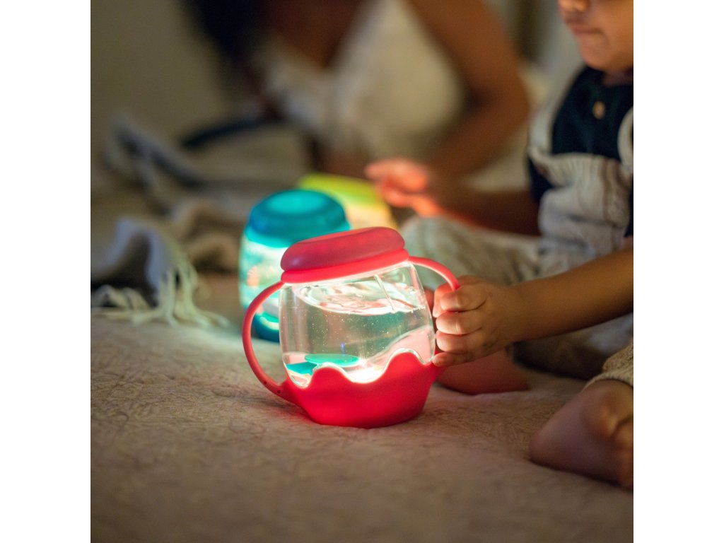Měnící se barvy světla přirozeně přitahují dětskou pozornost. Pozorování vody a jemného světelného efektu působí uklidňujícím a relaxačním dojmem. Mini sklenice je ideální jako: