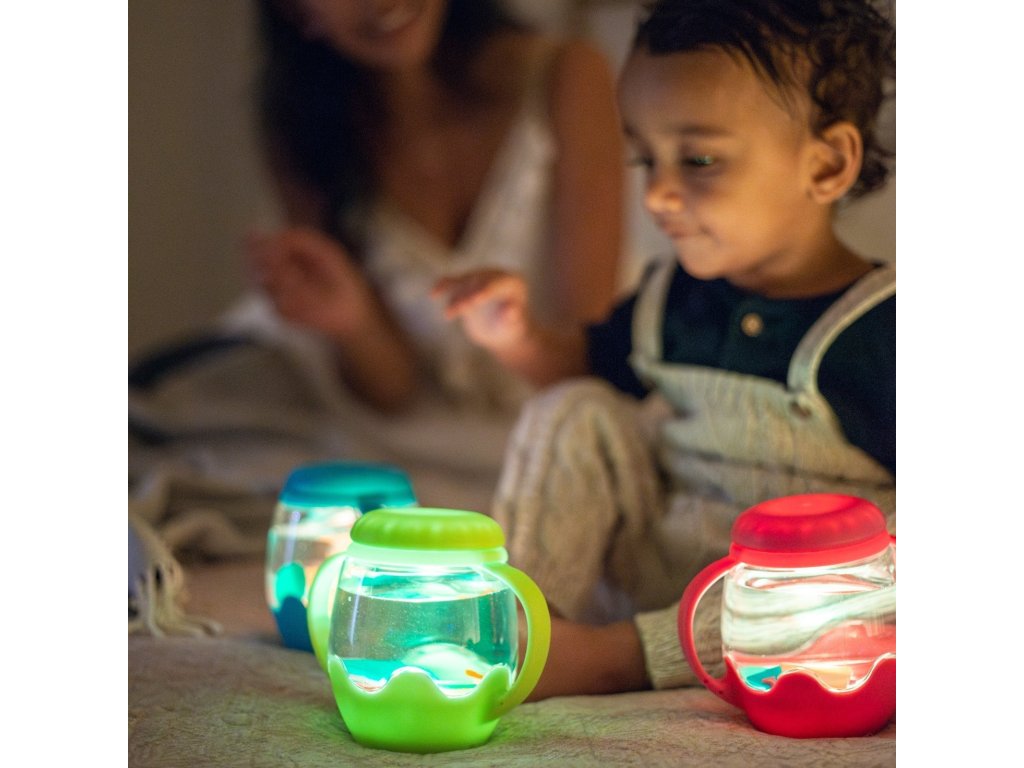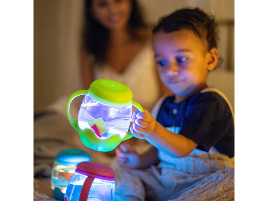 Měnící se barvy světla přirozeně přitahují dětskou pozornost. Pozorování vody a jemného světelného efektu působí uklidňujícím a relaxačním dojmem. Mini sklenice je ideální jako: