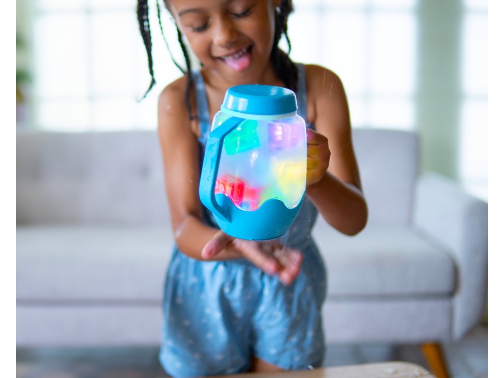 Smyslové nádoby Glo Pals nabízejí víc než jen zábavu! Měnící se barvy světla děti zaujmou, zatímco pozorování plovoucích prvků ve vodě je uklidní a uvolní. Vytváření nádob s různými motivy, jednobarevnými doplňky nebo šumivými prvky zvyšuje kreativitu a představivost dítěte. Do nádoby můžete přidat i naše svítící senzorické kostky, aby byla hra ještě vzrušující! Nejlepší zážitek ze hry přináší pozorování plovoucích smyslových předmětů, které plavou ve vodě nebo klesají ke dnu. Zkuste sklenicí zatřást, abyste vytvořili vlny a víření vody.