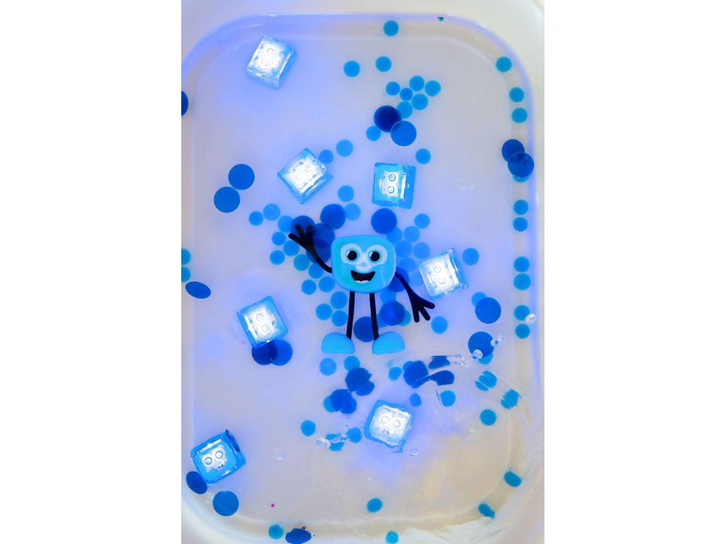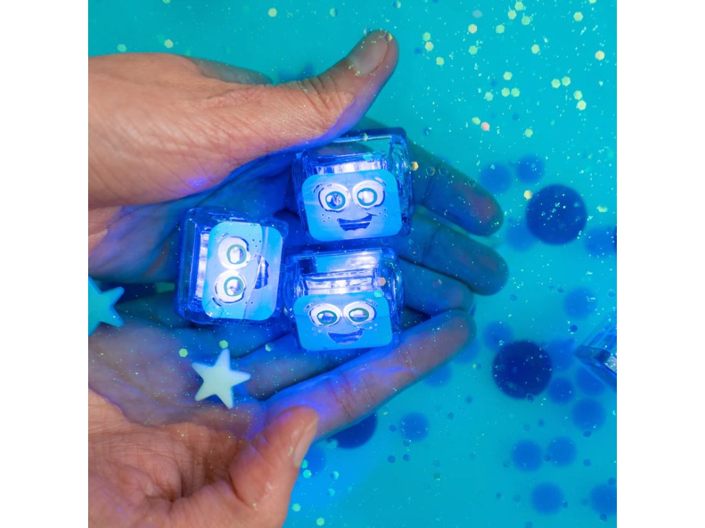 Kostky se aktivují při kontaktu s vodou a svítí v průměru 12-16 hodin nepřetržité hry (což představuje přibližně 20-30 koupání!*).