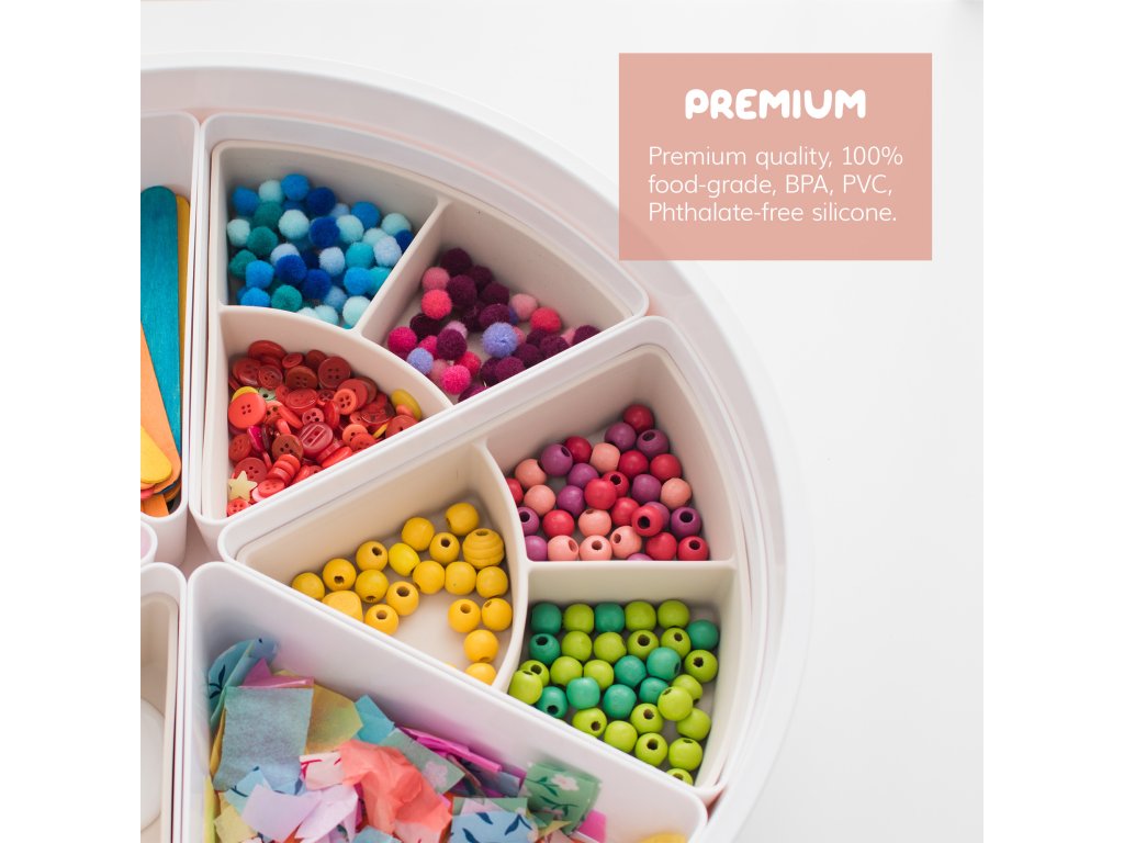 Zkraťte čas potřebný k nastavení a organizaci při smyslových nebo kreativních hrách s těmito praktickými silikonovými úložnými přihrádkami. Každá přihrádka je navržena tak, aby se vešla do přihrádek našeho PlayTray, což poskytuje větší všestrannost.