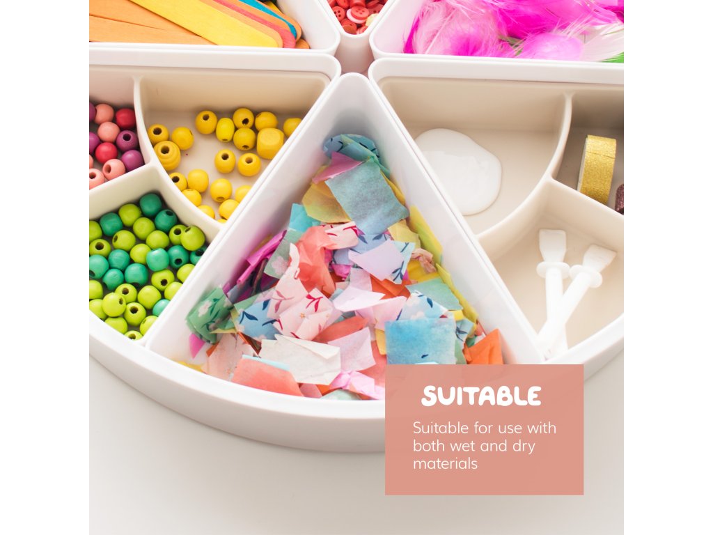 Lze je použít k organizování různých senzorických pomůcek, malých předmětů či kreativních potřeb jako malířské palety nebo nádoby na PVA lepidlo a kolážové materiály.