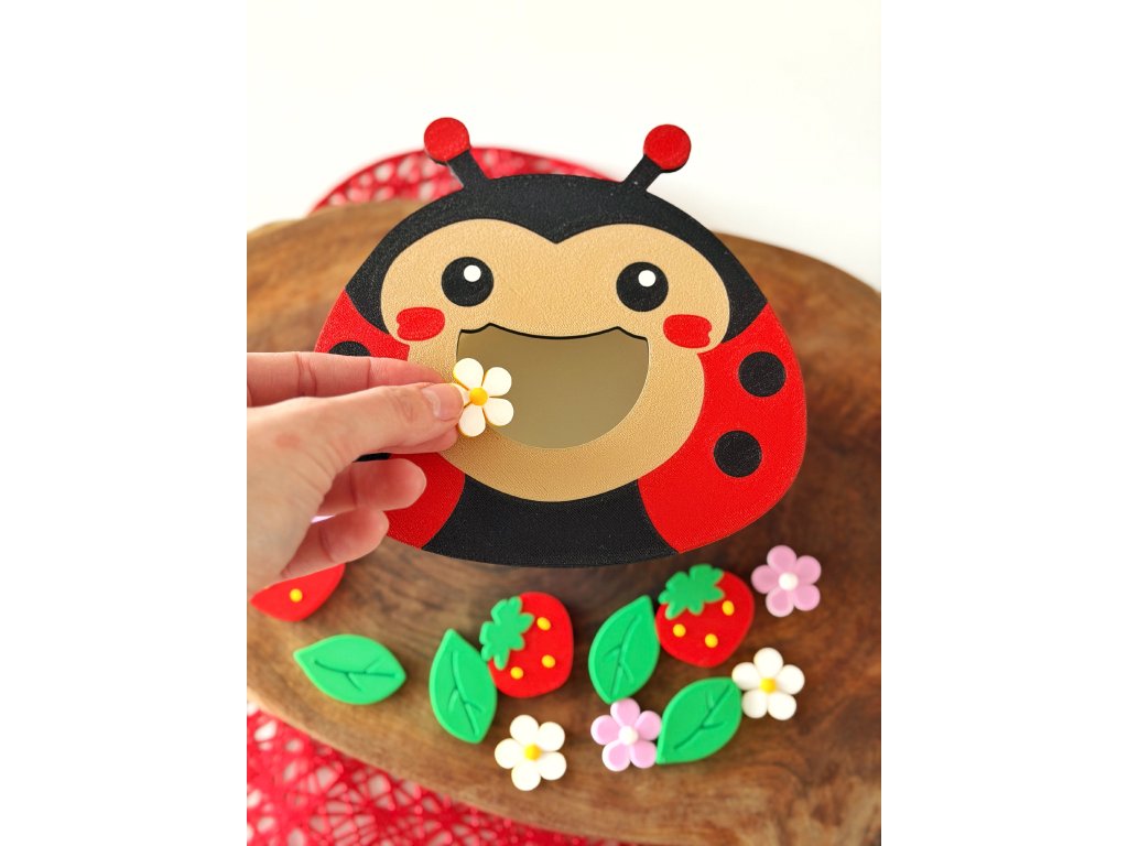 Mlsáček – beruška je senzorická pomůcka navržená pro aktivní hru, při které děti vkládají pamlsky pomocí prstů nebo pinzety. Hravou formou podporuje rozvoj jemné motoriky, koordinace ruka–oko a fantazie. Využití najde při senzorických aktivitách, stolních hrách, ve školkách, herničkách i v domácím montessori prostředí. Hru je možné dále obohatit dokoupením dalších setů pamlsků.
