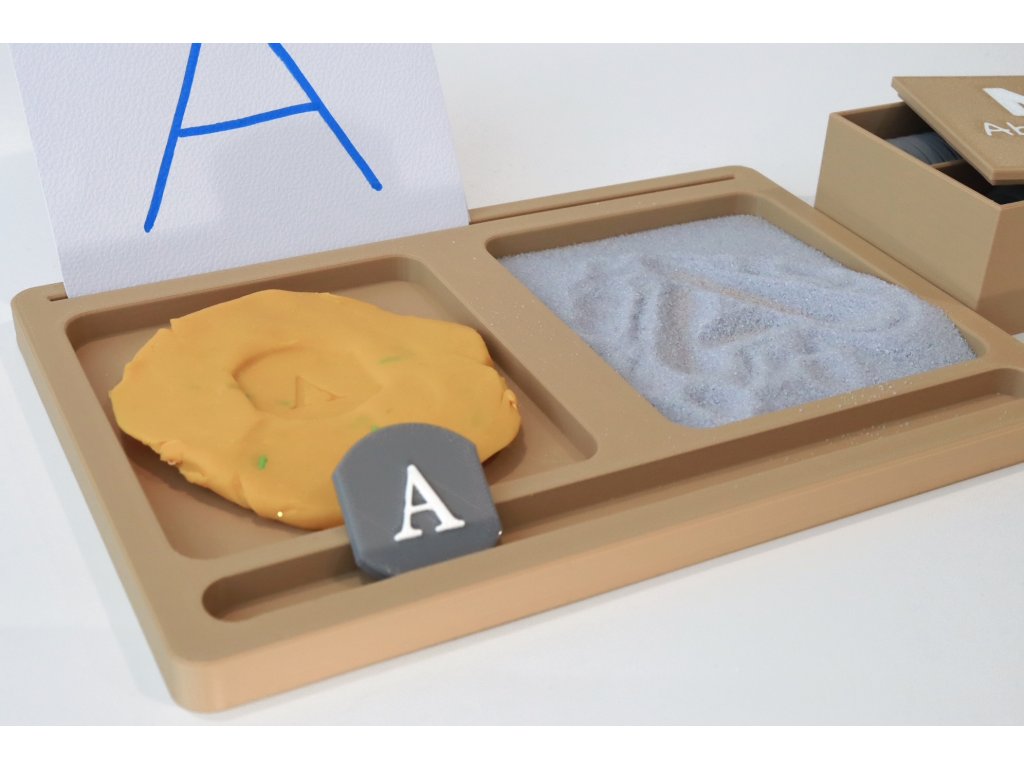 Tvořím : Prostorné místo na modelování písmen, tvarů nebo symbolů z písku, plastelíny či jiných senzorických materiálů.