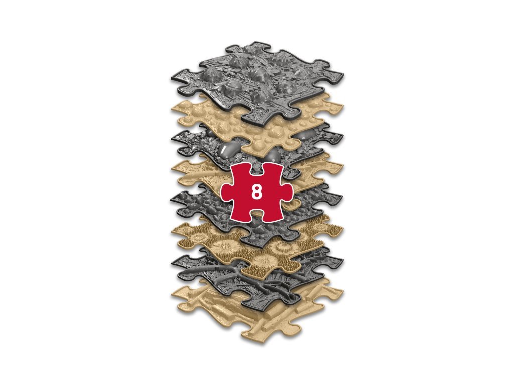 Obsahuje i 3D typy podložek, které posilují nejen chodidla, kotníky, kolena a boky, ale i hluboké svaly a hlboký stabilizační systém páteře, který je důležitý pro správné držení těla a zdravý vývoj. Ale to není vše, ortopedické podložky rozvíjejí představivost, jemnou motoriku, koordinaci, prostorovou orientaci, pravo-levou orientaci a rychlost reakce.