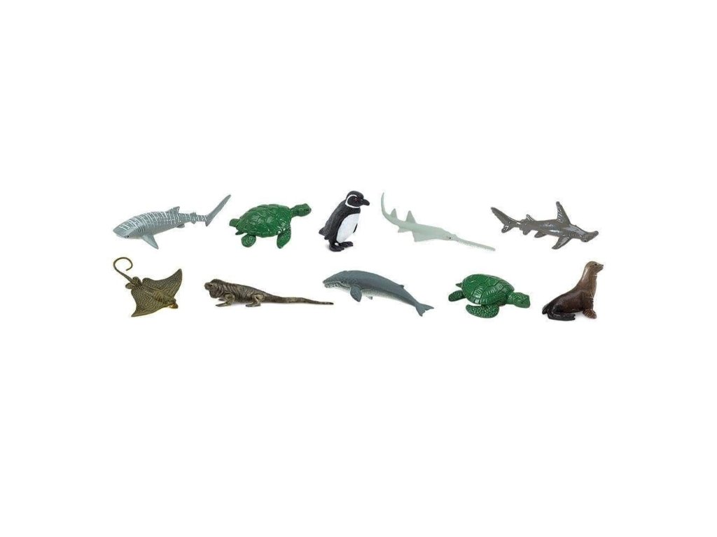 Sada obsahuje 10 figurek: Plejtvák obrovský, žralok velrybí, mořský leguán, kareta pravá (hawksbill), tučňák galapážský, lachtan (sea lion), rejnoček skvrnitý, piloun (sawfish), kareta Kempova (Kemp’s Ridley) a kladivoun velký.