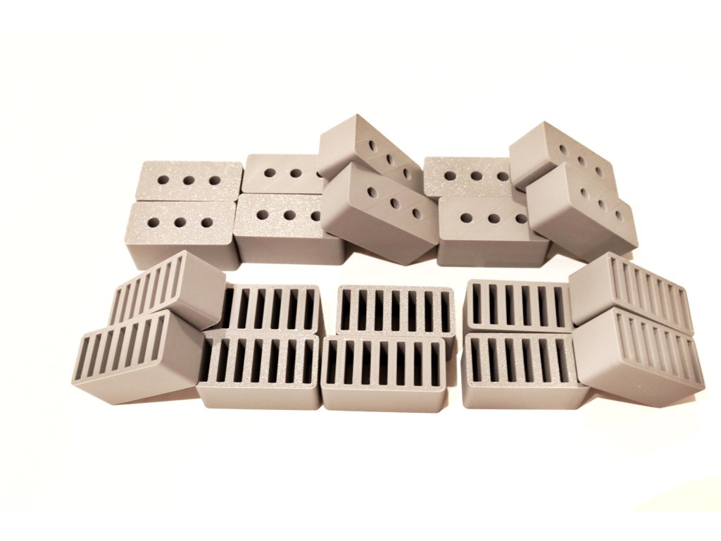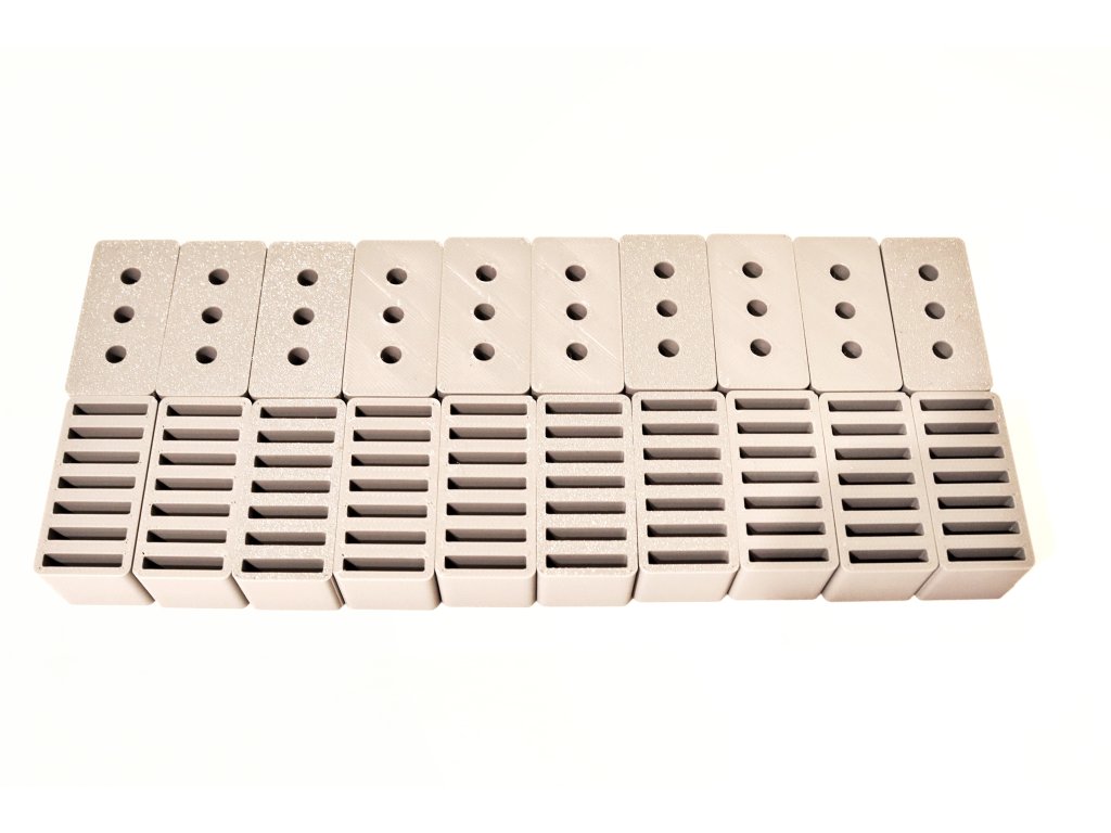 - 20 mini bloků ( 10 strukturovaných bloků a 10 strukturovaných bloků s dírkami)