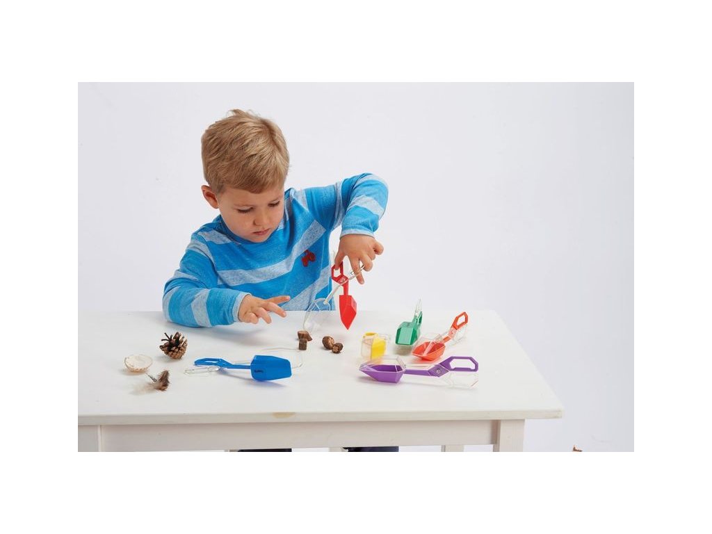Vhodné na různé senzorické aktivity - přesouvání malých objektů, třídění. Nechte dítě objevovat nové možnosti a zároveň se učit novým dovednostem s těmito skvělými kleštěmi. Doplňte hru o pozorovací lupy, či duhové pozorovací nádoby a zábava je zaručena!