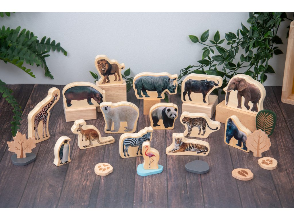 Robustní dřevěné kostky jsou hladké na dotek a malé děti s nimi mohou snadno manipulovat, postavit je a stohovat. Realistické obrázky umožní mladším dětem naučit se názvy a vlastnosti různých zvířat z celého světa a starší děti povzbudí k tomu, aby lépe pochopily tyto fascinující tvory, vizualizovaly si je při vyprávění příběhů nebo tvůrčím psaní a diskutovaly o otázkách životního prostředí.