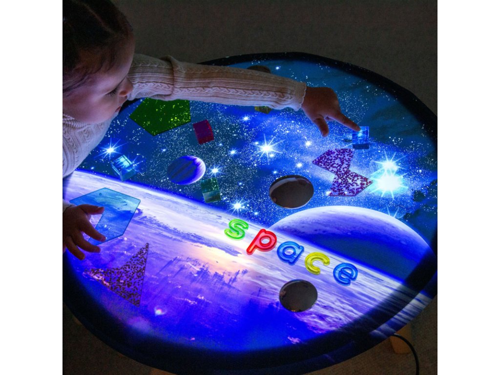 Hrací podložka se skvěle vejde do našeho stolku Stůl pro suché i vodní senzorické aktivity nebo na jakémkoli rovném povrchu.