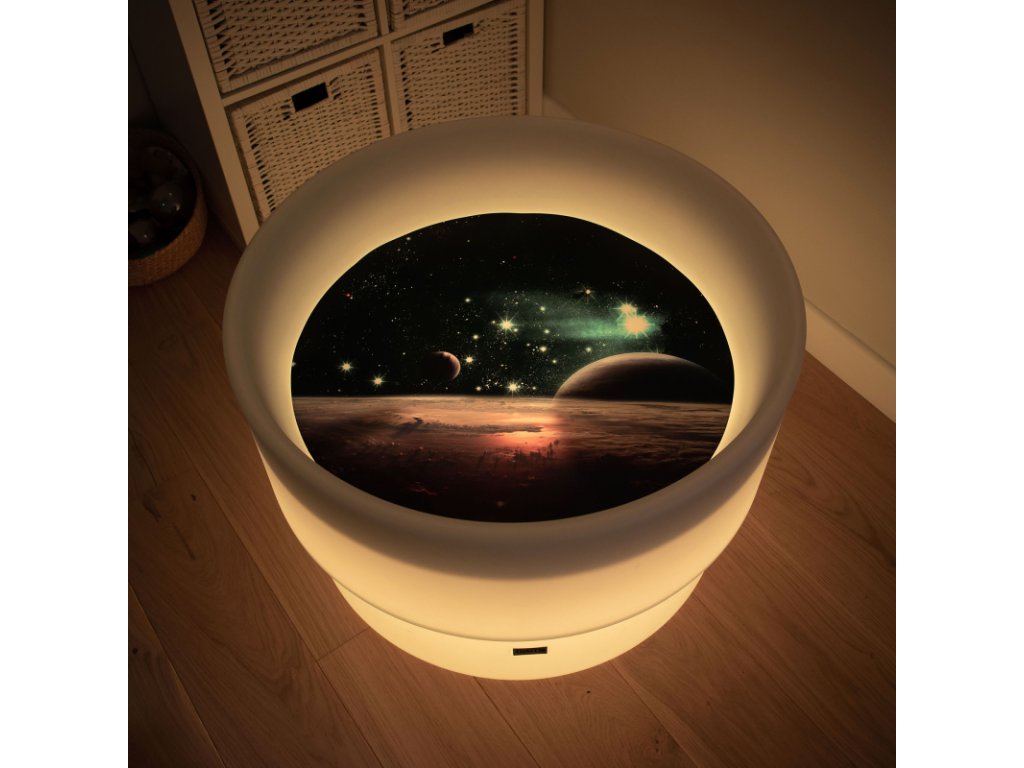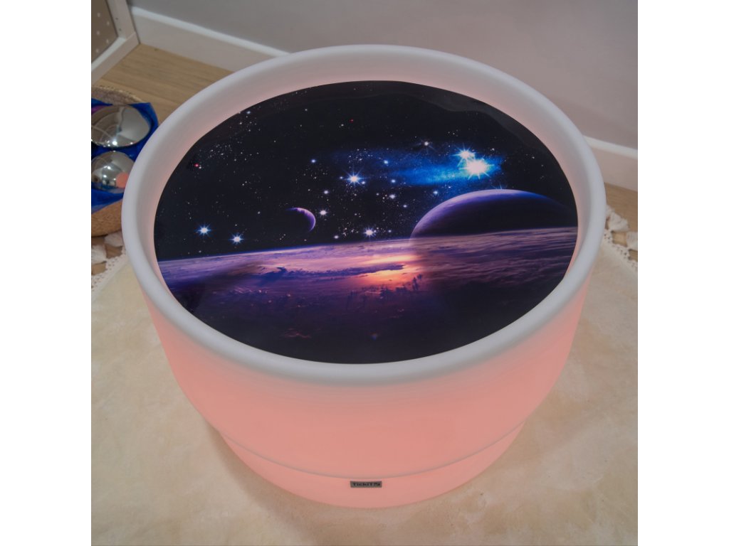 Díky svým poloprůsvitným vlastnostem se hrací podložka obzvláště dobře hodí na světelný panel nebo světelný stolek, protože světlo prosvítá a osvětluje obrázky na podložce. Zvolený zdroj barev ovlivní vzhled podložky různými způsoby: buď změnou některých barev scenérie, zesílením barev, nebo dokonce tím, že některé barvy budou jakoby fluoreskovat - je to fascinující způsob, jak zkoumat barvy během hry.