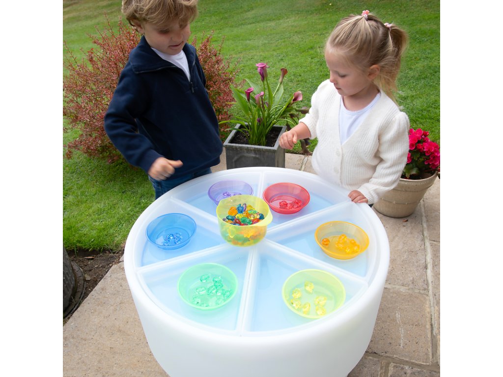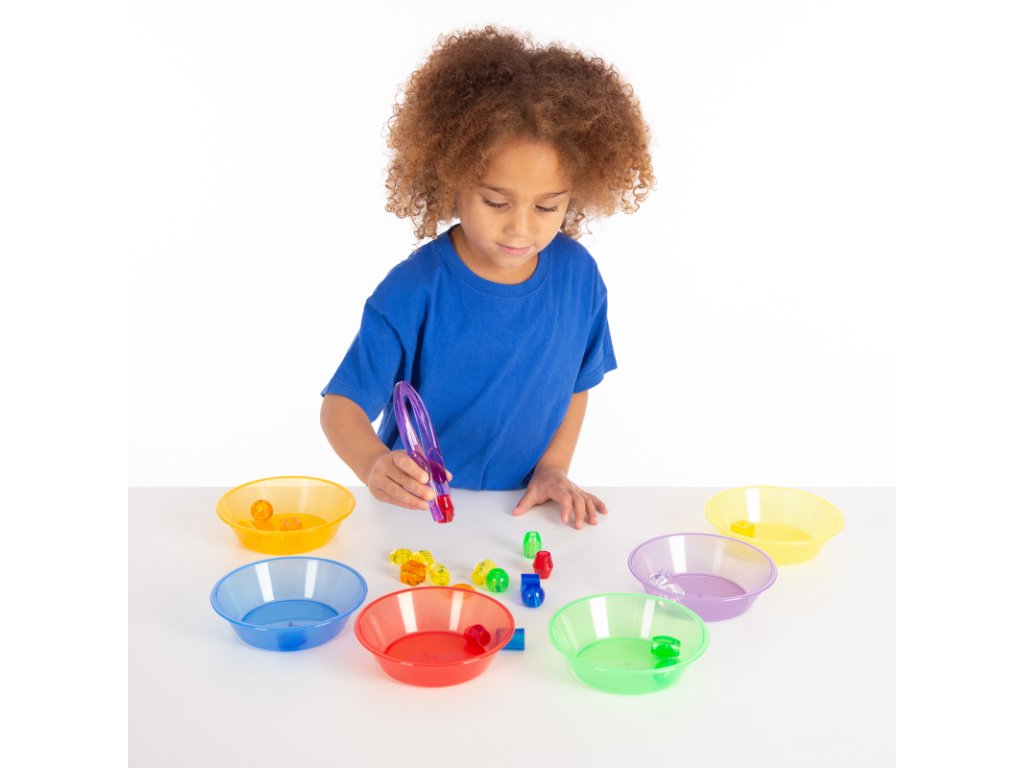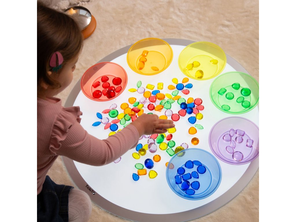 Barevné misky jsou perfektním pomocníkem a doplňkem k senzorickým hrám. Jejich průsvitný design umožňuje dětem objevovat fascinující barevné kombinace, když je položí na Light panel.