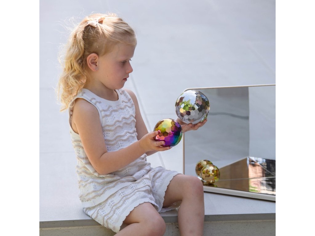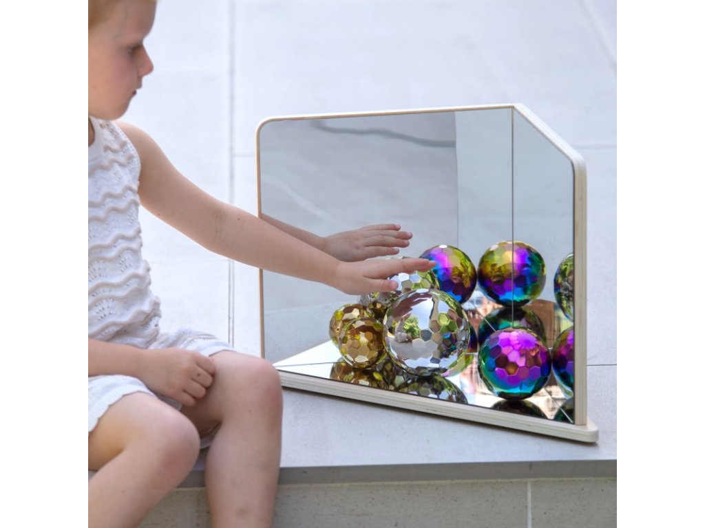 👀 Vizuální stimulace – zrcadlový povrch vytváří zkreslené a fascinující odrazy