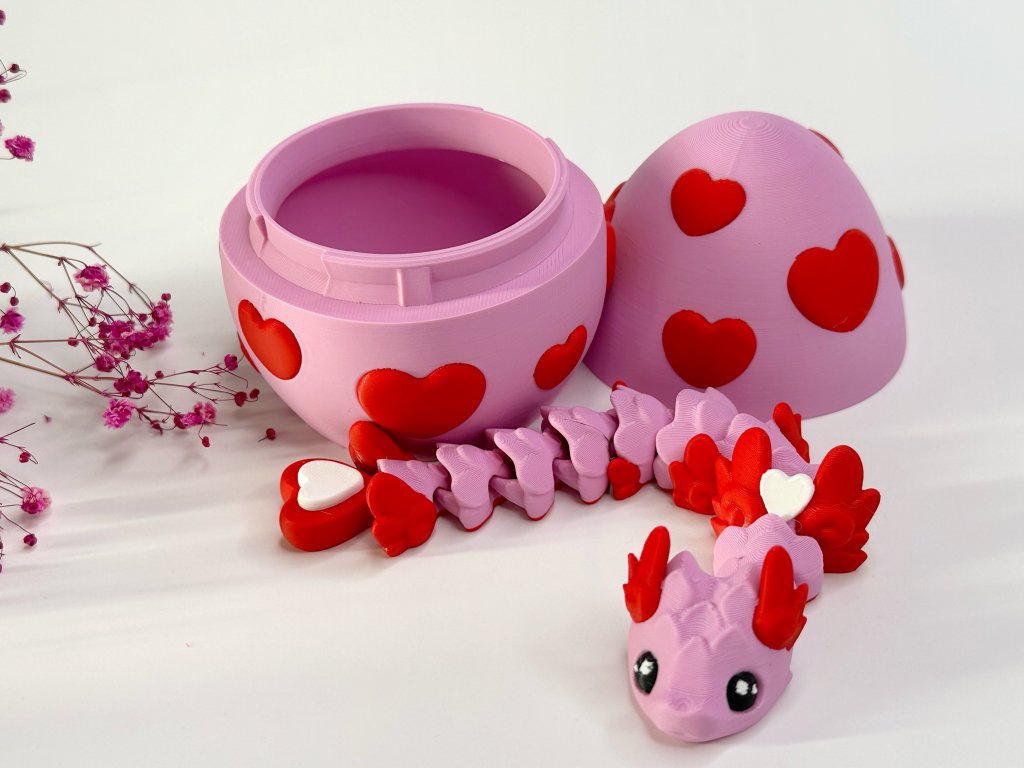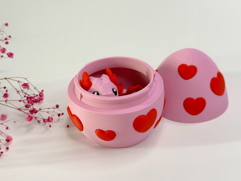 Valentýnské vejce s hádětem je jedinečný produkt vytvořený na 3D tiskárně, který spojuje hravost a funkčnost. Toto vajíčko v jemně růžové barvě je perfektním dárkem nejen na Valentýna. Pro děti, které milují kreativní hračky, nebo jako symbolický dárek pro někoho blízkého.