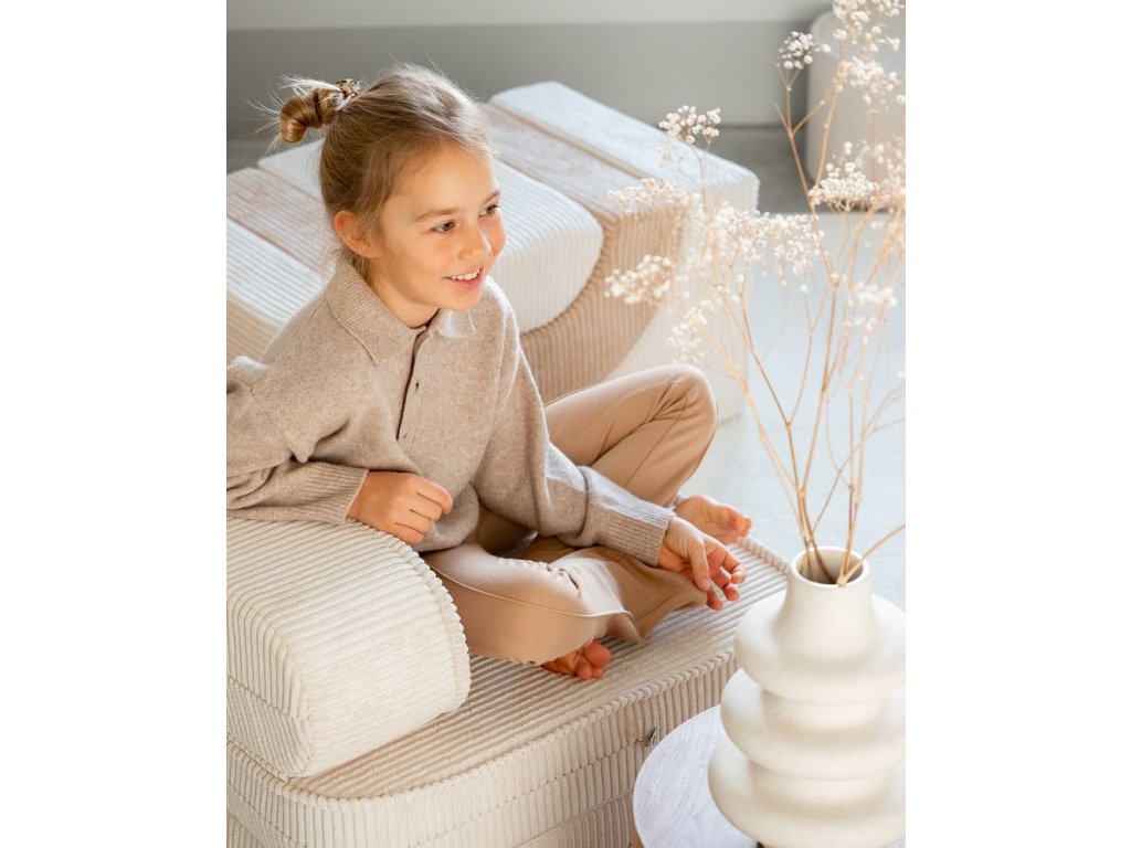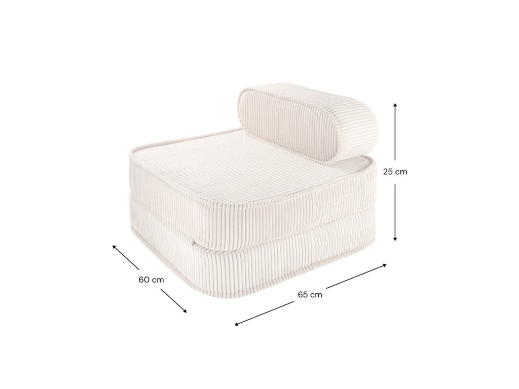 Je navrženo pro nekonečné možnosti využití – od klidného čtení až po velké polštářové pevnosti. Křeslo je dostatečně lehké, aby si ho děti uměly samy přesouvat a rozkládat na dětskou postel, čímž se podporuje jejich samostatnost a úklid je jednodušší. Flexibilní favorit, který roste spolu s dětskou fantazií.