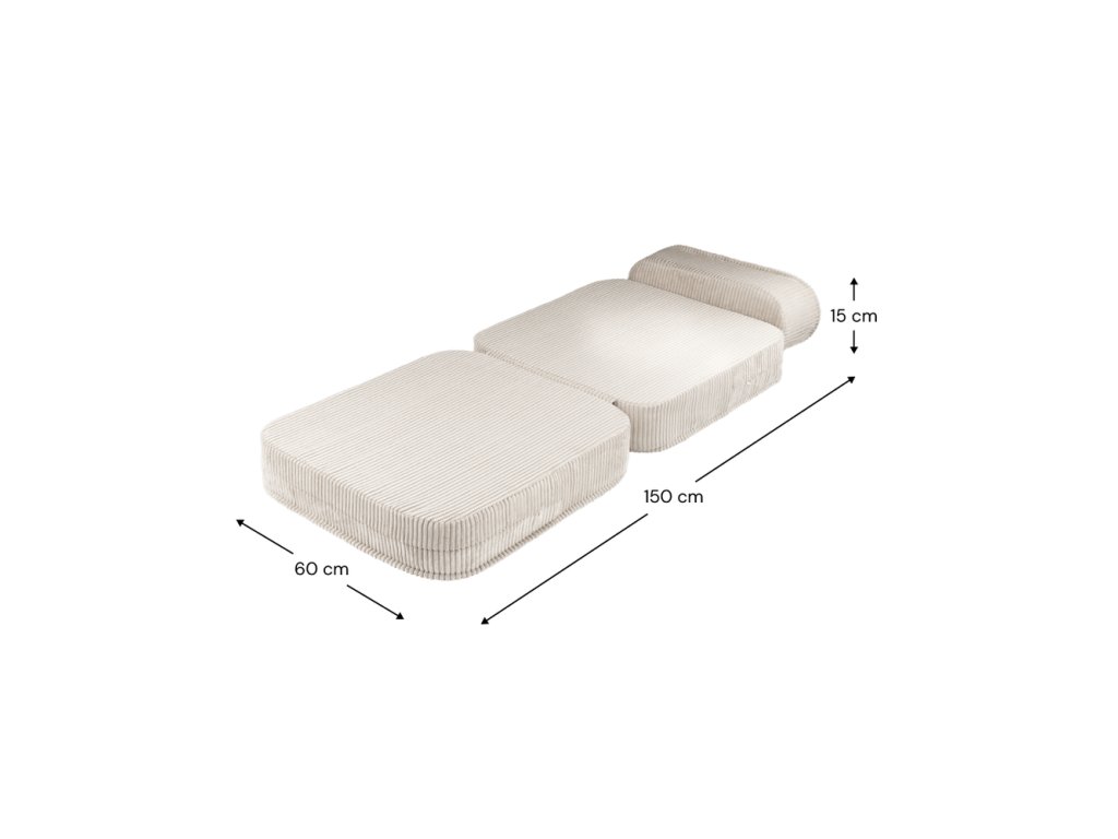 Rozměry (rozložené): šířka 60 cm x délka 150 cm x výška 15 cm