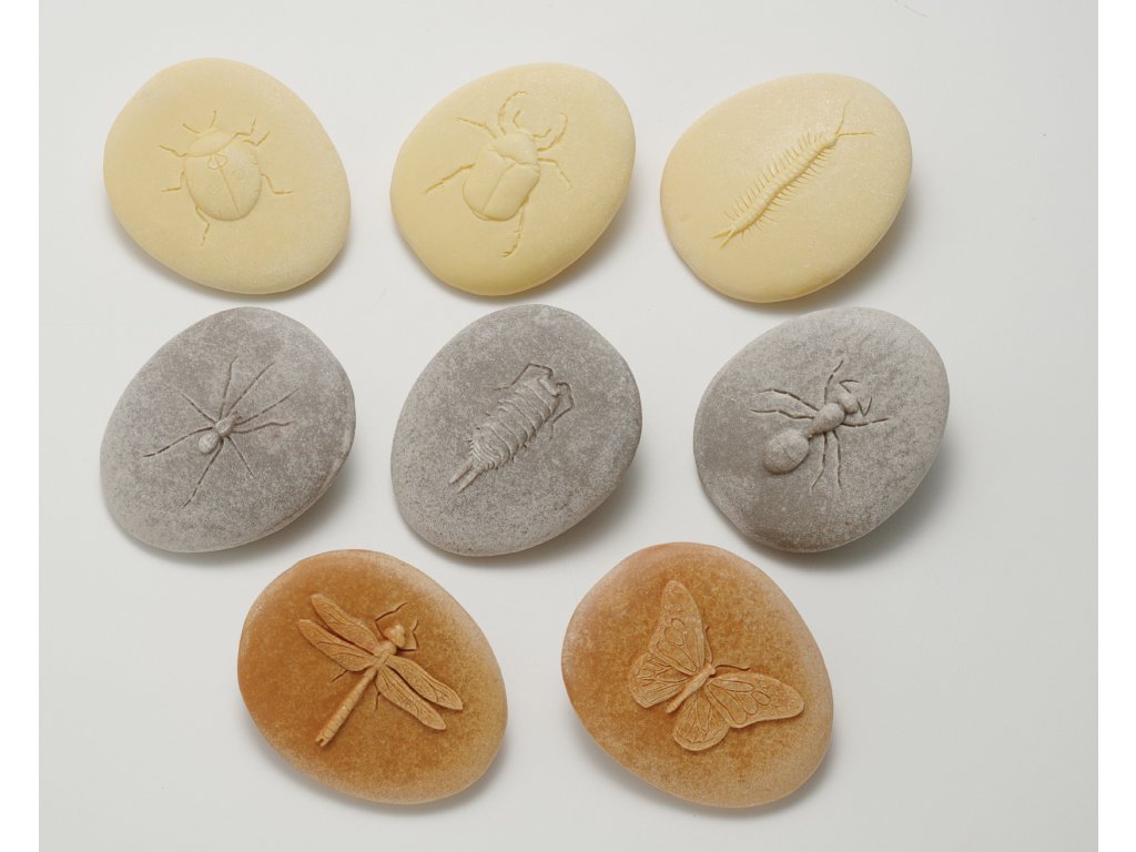Vyrobeno z vysoce odolné směsi kamenů a pryskyřice, kameny jsou určeny pro hru v interiéru i v terénu – v trávě, písku nebo blátě. Snadno se čistí a jsou prakticky nerozbitné. Sada skvěle rozvíjí slovní zásobu spojenou s přírodou, pozorovací dovednosti a probouzí v dětech respekt k malým obyvatelům naší planety.