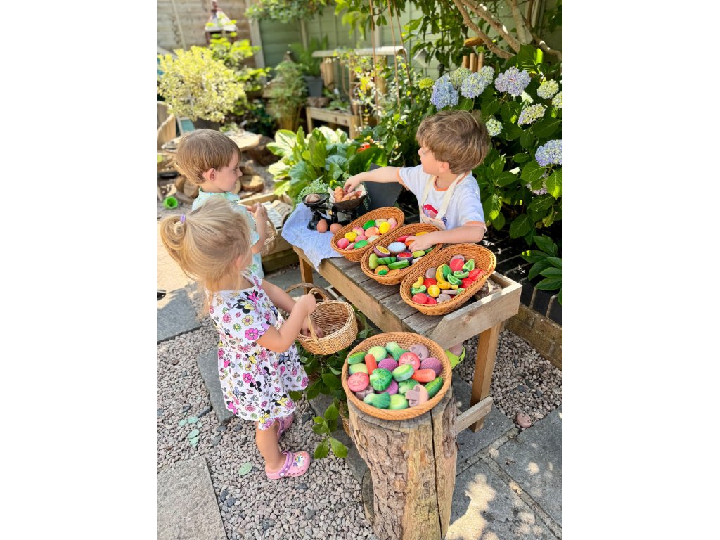 Vyrobeno z odolné směsi kamenů a pryskyřice, kameny jsou vhodné pro hru uvnitř i venku. Jsou omyvatelné a připravené na „vaření“ v blátě nebo písku. Sada rozšiřuje slovní zásobu, učí děti o rozmanitosti potravin a podporuje zdravý vztah k jídlu prostřednictvím kreativní hry.