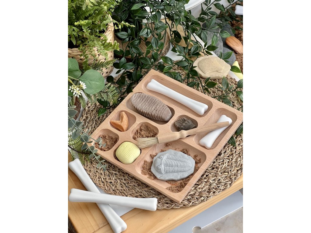 Sada obsahuje čtyři různé velikosti kostí (od 6 do 12 cm), což umožňuje dětem kosti třídit, porovnávat délky, vytvářet řady a procvičovat základy matematiky hravou formou. Tato hmatová pomůcka skvěle rozvíjí jemnou motoriku, koncentraci a podněcuje fantazii při hrách na vědecké expedice do pravěku.