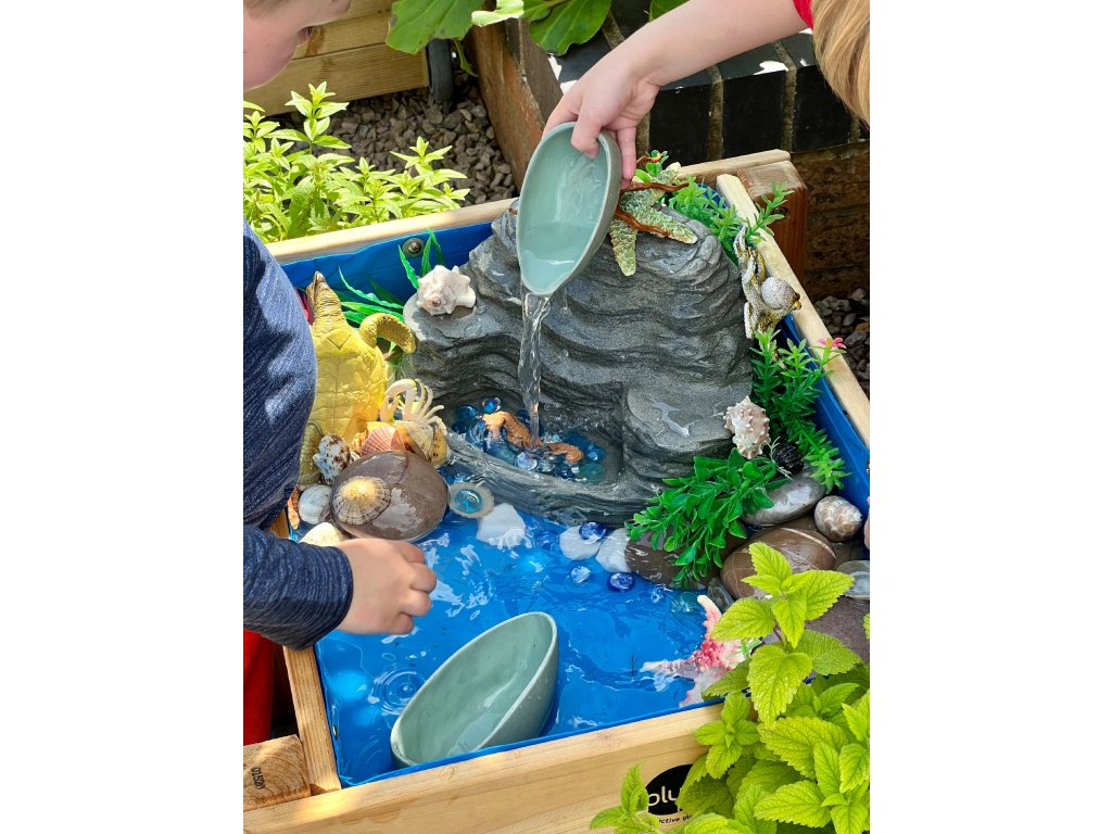 Skvělý doplněk k vodním hrám, pískovišti nebo hrám v malých světech s figurkami ryb, zvířat či dinosaurů. Vodopád podněcuje vyprávění příběhů o cestování, přírodních silách a biotopech. Po hře se snadno očistí a je připraven k dalšímu použití uvnitř i venku.