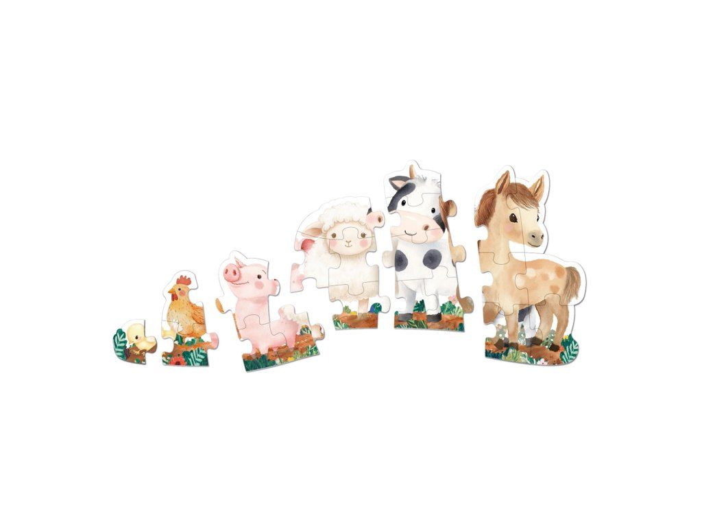 - Krásné ilustrace zvířátek z farmy, které děti motivují ke hře.