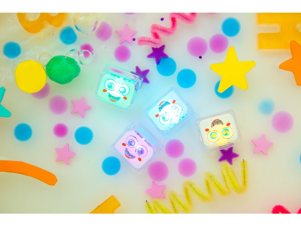 Čištění snímačů: Pokud si všimnete, že kostky po několika koupáních svítí méně jasně, vyčistěte kovové kontaktní body (senzory aktivující světlo).